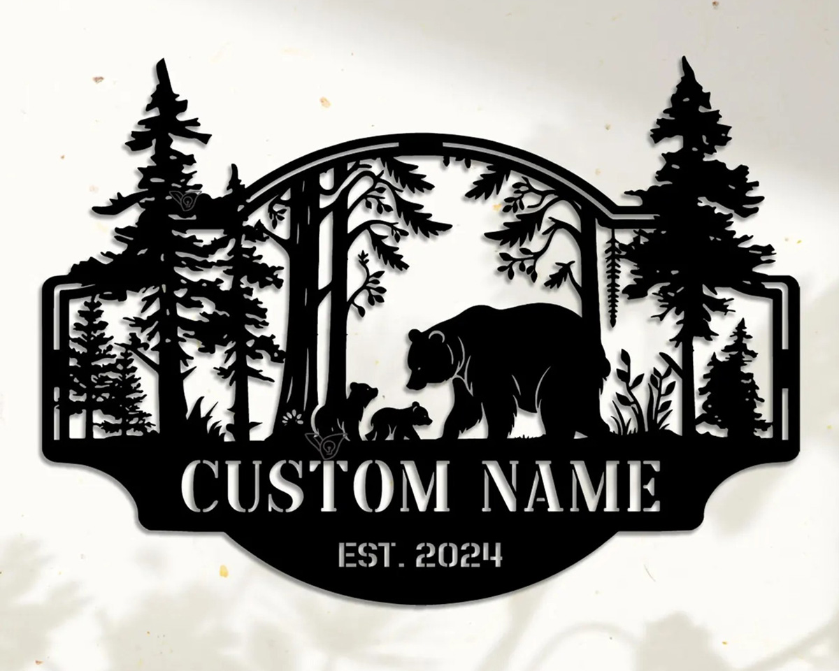 Personalized Bear Metal Sign Name Outdoor TMS1640