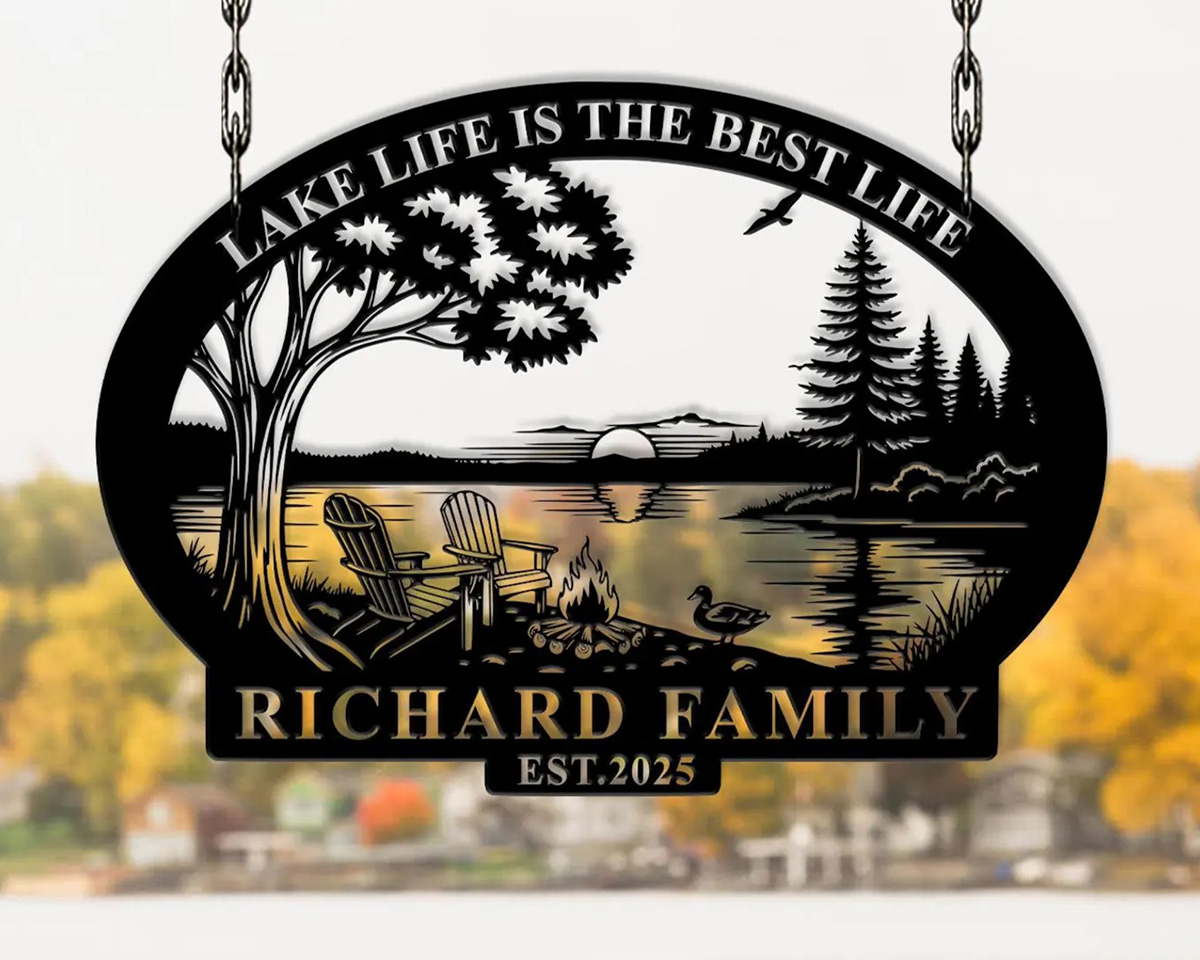 Personalized Custom Lake House Metal Sign Family Name Outdoor TMS1586