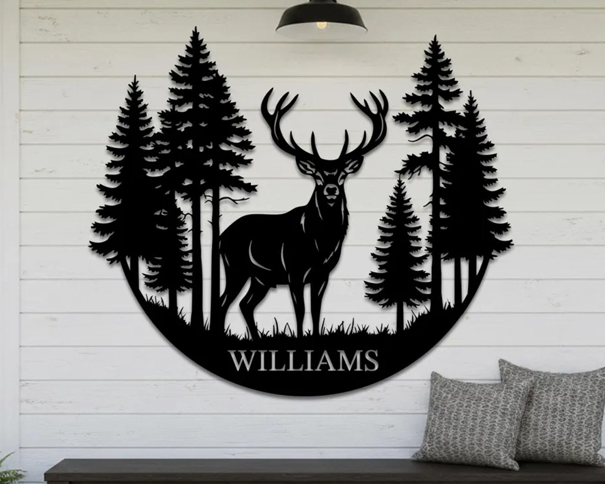 Personalized Deer Metal Sign Family Name Outdoor TMS1623