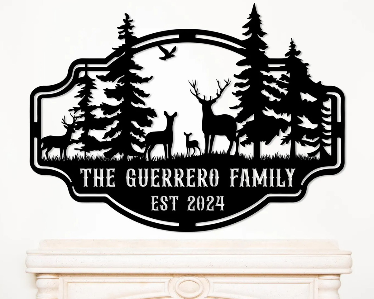 Personalized Deer Metal Sign Family Name Outdoor TMS1624